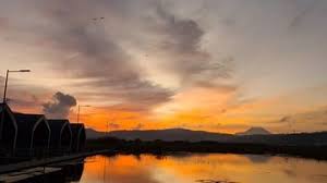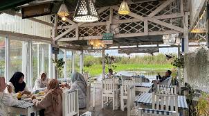 Lokasi yang unik: berada di area telaga dengan jembatan kayu menuju kafe, menghadirkan nuansa alam dan santai.